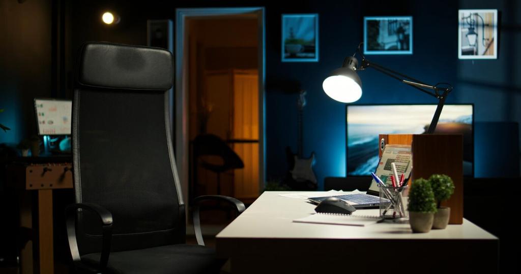 Ottomanen mit Deckel, Betten mit Schubladen und Sofas mit Stauraum nehmen Decken, Technik oder Akten diskret auf. Integrierte Kabelkanäle verhindern Chaos, sodass Oberflächen frei bleiben. Je weniger sichtbar herumliegt, desto großzügiger wirkt der Raum. Verraten Sie uns, welche Verstecke Ihren Alltag sofort erleichtert haben.